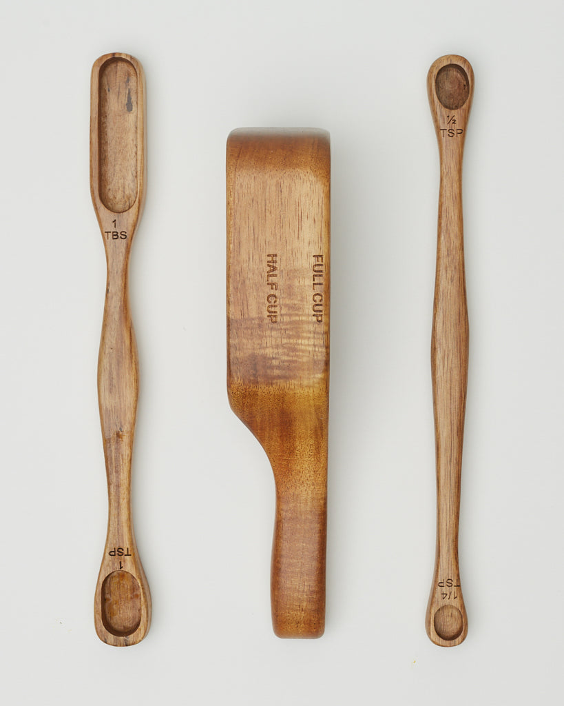 Measure out six different quantities with these three double-sided acacia wood measuring utensils.