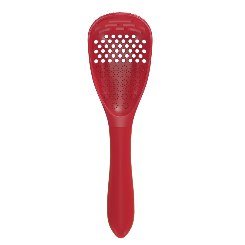 This 11 inch super spoon is a kitchen workhorse. It can be used to lift, drain, grate, mash, and whisk. The ergonomic handle is comfortable in the hand and easy to hold. Sturdy nylon construction. Dishwasher-safe and heat-resistant up to 335 degrees Fahrenheit.