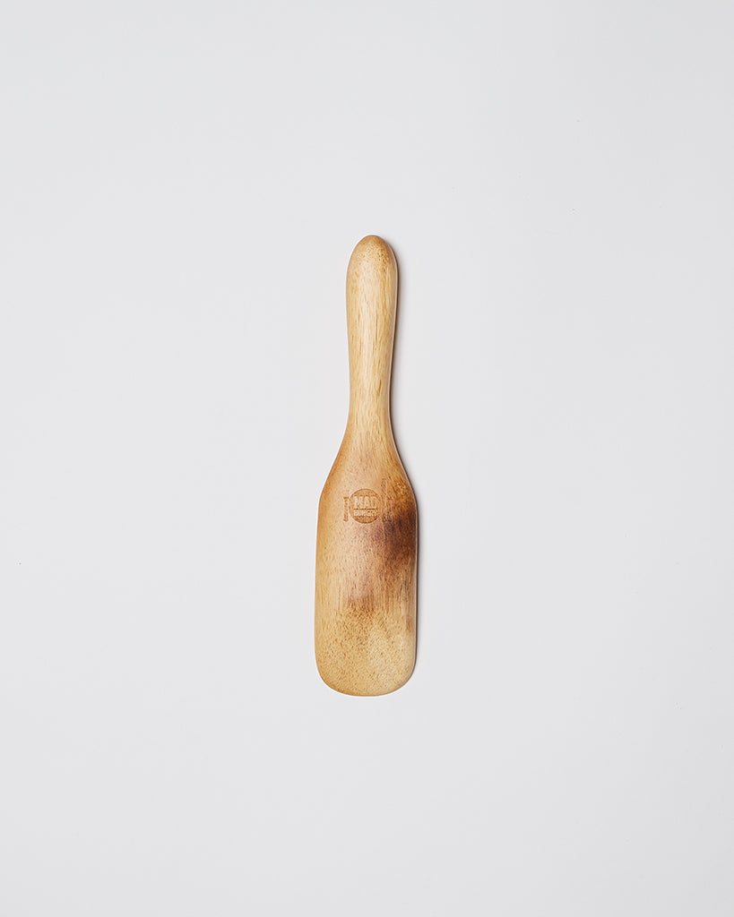 The Mad Hungry "mini" spurtle, hand-finished from acacia wood. Each piece is one of a kind.